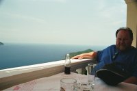 In Agios Georgios wurde einst die berüchtigte Leiche angeschwemmt. Der Krimiautor Roberto Bardez verrät mir das Geheimnis. Aber nicht nur das des Toten, sondern auch das Geheimnis eines richtig guten Kriminalromans. Doch was macht der Dicke hier? Robert lacht: Ich wollte Palmen in meinem Garten haben.